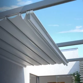 Posuvné funkční střechy z PVC textilie jsou součástí pergol hliníkových i dřevěných.