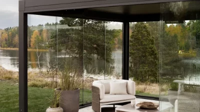 Konstrukce pergoly (vícekomorová) a její statika umožňuje instalaci bezrámových skel, screenových rolet, infrazářičů. Opera – to je život i relaxace venku bez omezení.